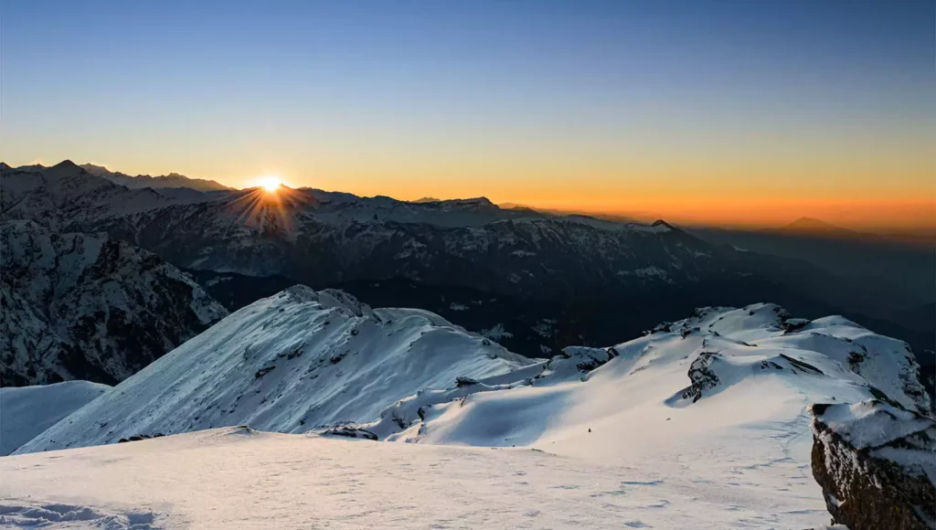 - Capture the breathtaking sunset behind the Swargarohini peaks.